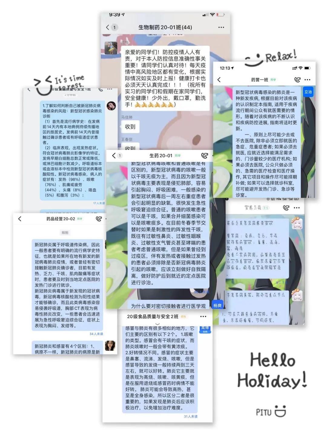 为做好新冠肺炎疫情的防控,保障我院学生的安全稳定,食品药品学院通过多种线上形式于2021122日开展假期疫情防控宣传教育主题活动,在全院学生中广泛宣传假期防控知识,做到全覆盖、不断线,疫情防控人人参与,使校园疫情防控和学生管控更加严密。