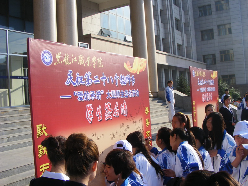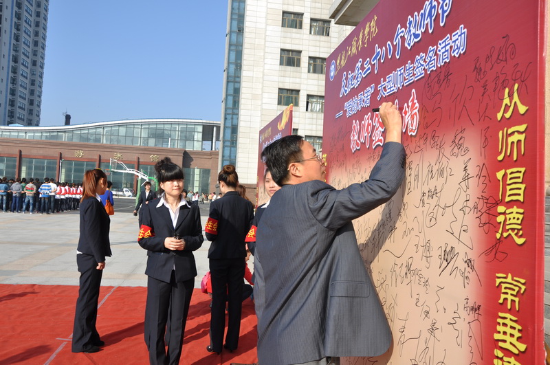 金秋送爽,硕果飘香。9月10日,学院在主楼门前广场隆重举行了以“爱的承诺”为主题的迎接第28个教师节大型师生签名活动。