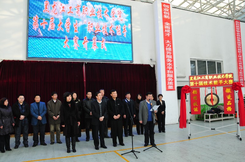 学院第十届大学生“职业技术能手”大赛于11月30日在校园文化中心隆重开幕。党委书记冯玉龙,副院长何承贵、刘公远,纪委书记周莲香出席开幕式,各部门负责人、部分教师代表及大赛参赛选手代表参加开幕式。开幕式由副院长刘公远同志主持。何承贵副院长宣读大赛组委会名单及竞赛项目,冯玉龙书记为大赛鸣锣开赛。