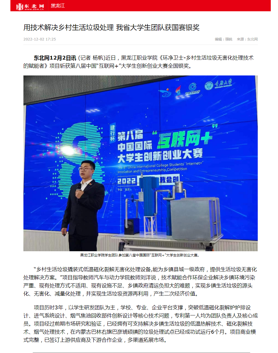 【东北网】用技术解决乡村生活垃圾处理 我省大学生团队获国赛银奖