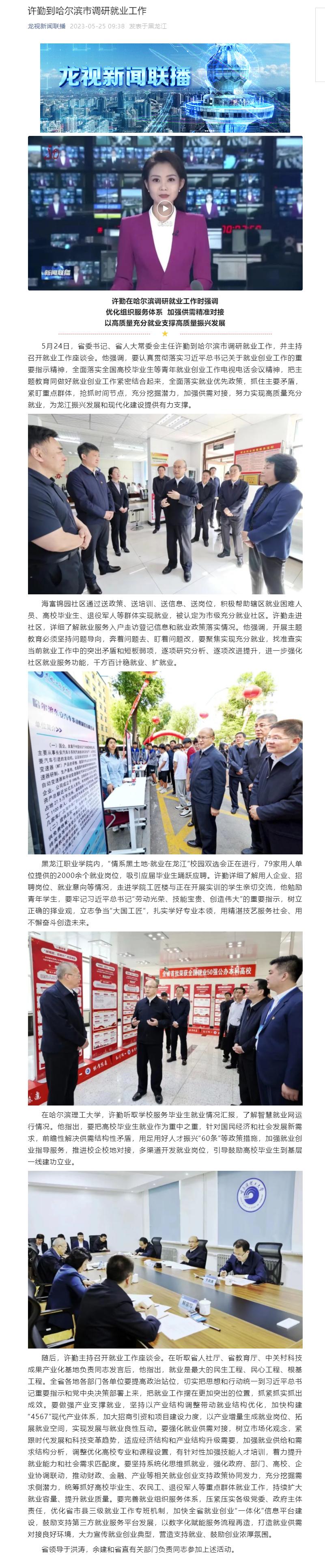【龙视新闻联播】许勤到哈尔滨市调研就业工作
