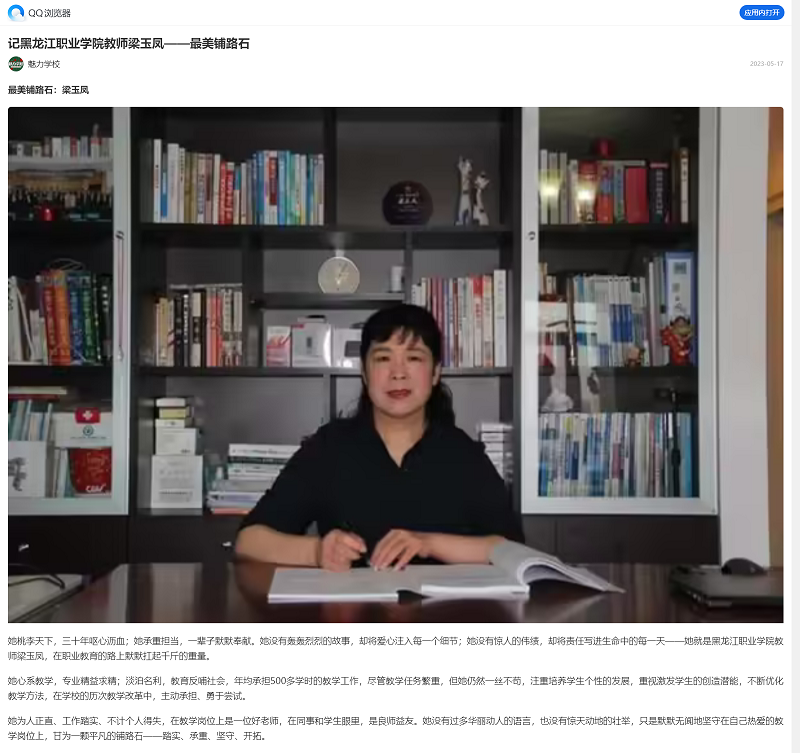 【QQ浏览器】记15vip太阳集团官网教师梁玉凤——最㺯铺路石