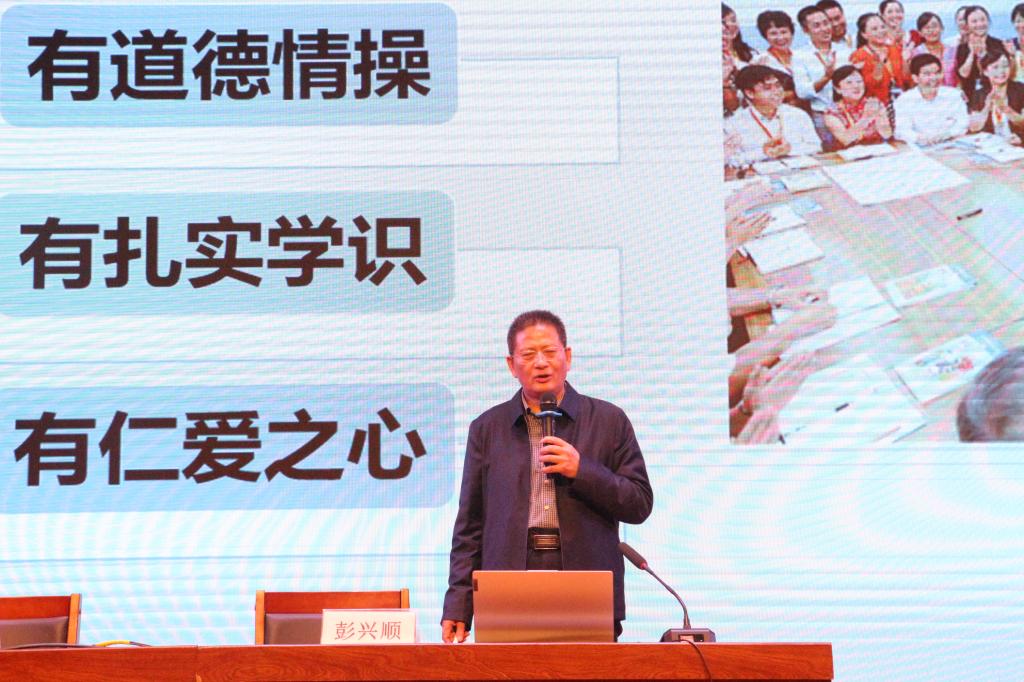 本次讲座特邀湖南旅游技师学院党委书记、管理学教授彭兴顺担任主讲嘉宾。彭兴顺围绕“师德师风建设”核心主题,结合新时代教育发展的新形势与新要求,从政策解读、理论阐释、实践案例分析等维度进行精彩分享。他提出,师德师风是教师的立身之本,是教育事业发展的灵魂工程,新时代教师要自觉肩负起“为党育人、为国育才”的崇高使命,以高尚的道德情操和扎实的专业素养引领学生健康成长。