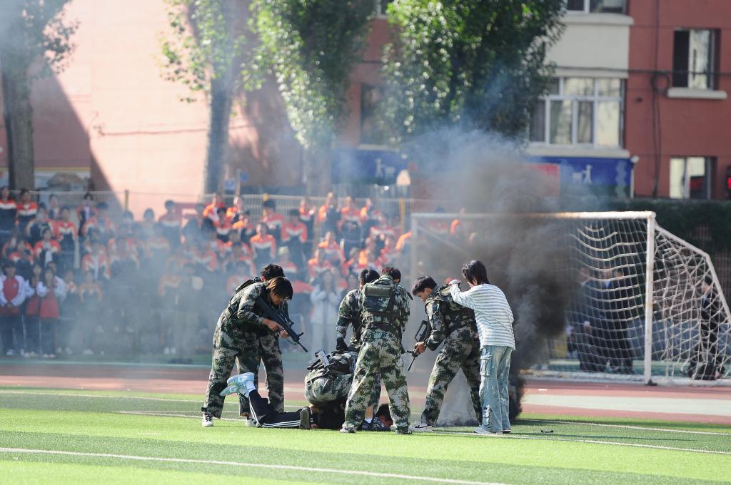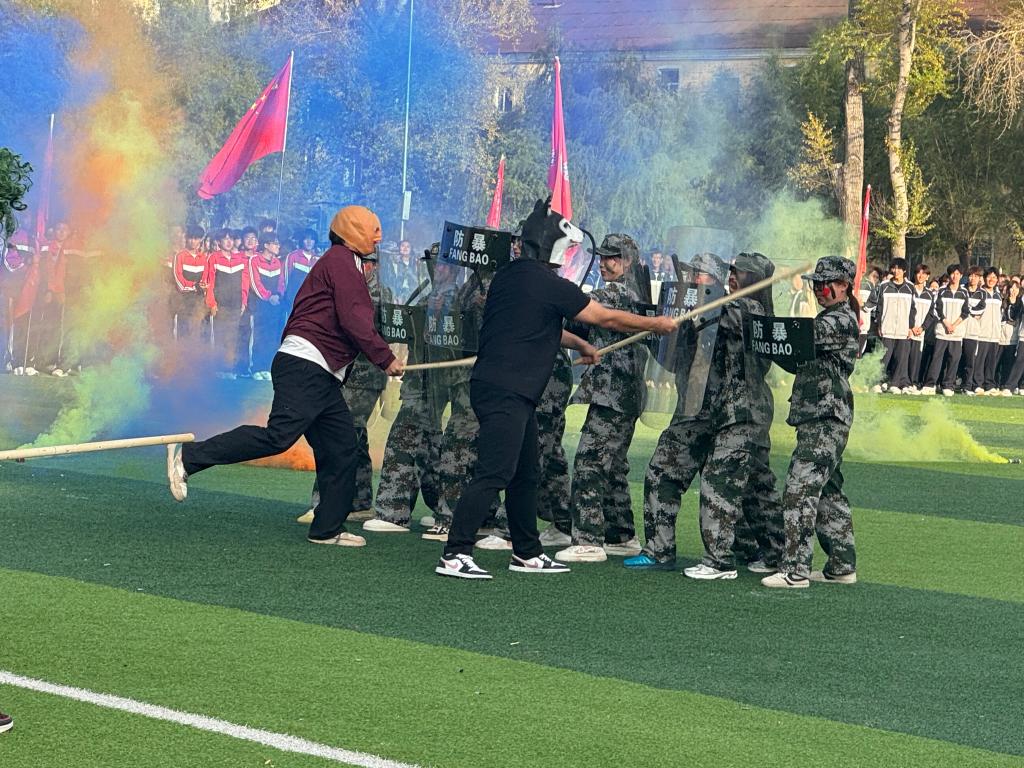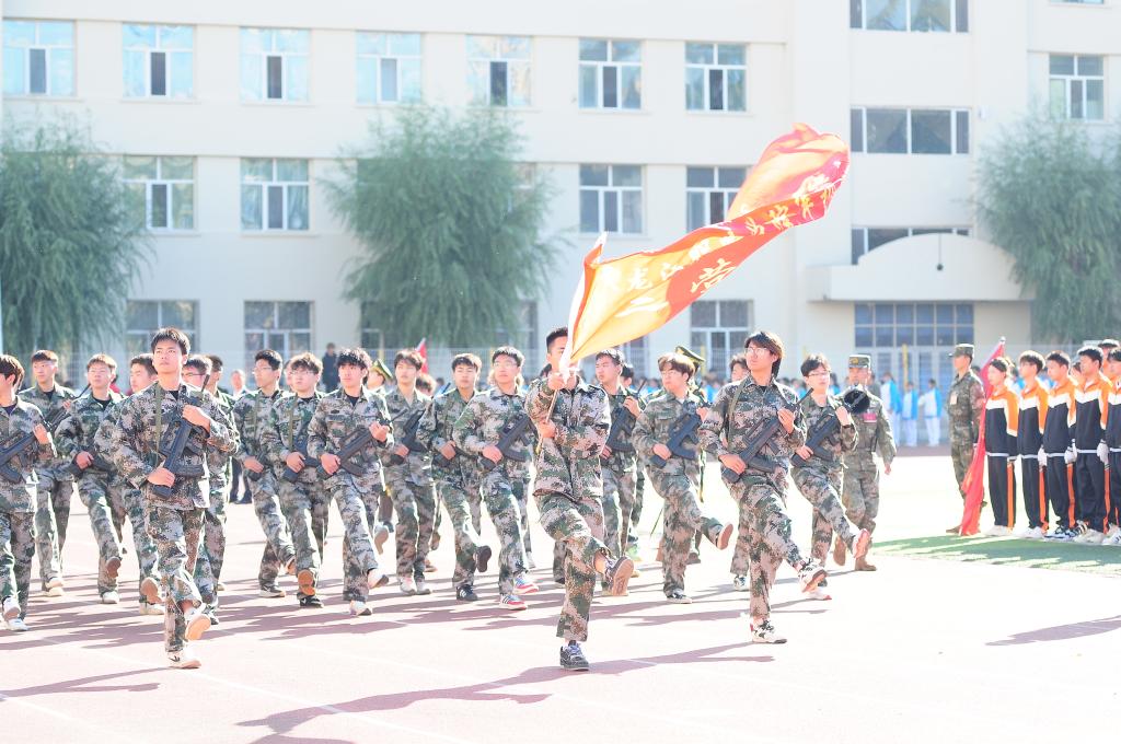 伴随着雄壮的中华人民共和国国歌,大会正式拉开帷幕。当激昂的《分列式进行曲》响彻运动场,学校军训团9个营、53个连队依次通过主席台,接受全场检阅。各营相继展示了刺杀、战术基础动作、擒敌拳、匕首操、战术对抗、枪械组合等军训科目。参训学生步伐铿锵、口号嘹亮、斗志昂扬,全方位展现了此次军训取得的扎实成果,充分彰显了“新龙职人”的青春朝气与坚毅品格。