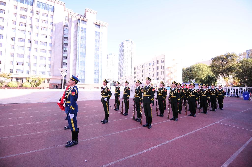 ▲王利文为第二校区军训会操表演一等奖集体颁奖