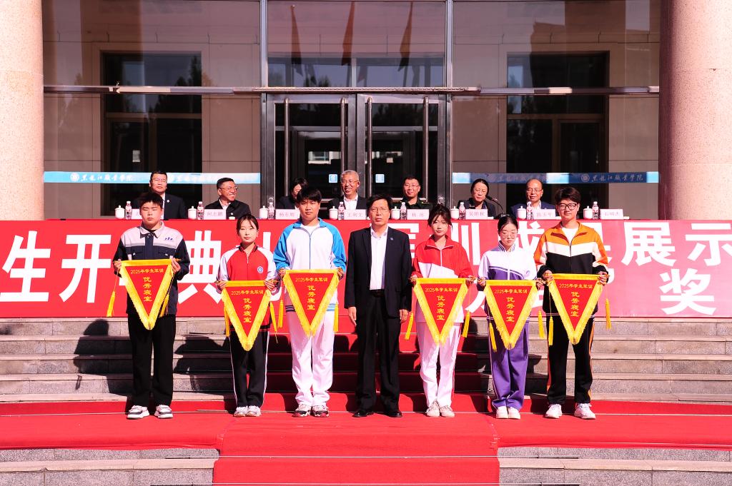 9月29日,学校2025级新生开学典礼暨军训成果展示、“龙职”奖颁奖大会隆重举行。校长王利文,党委副书记杨东辉,副校长吴艳秋、何志鹏,纪委书记陈玉平,副校长王广文,党委委员、组织部部长石明杰,承训部队代表杨冰、陈正极出席活动。大会由杨东辉主持。
