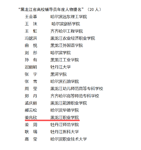由中共黑龙江省委宣传部、省委教育工委、省教科文卫体工会共同组织的2025年“龙江最美高校辅导员”暨第十七届“黑龙江省高校辅导员年度人物”推选展示活动结果正式公布,太阳官网建筑工程学院辅导员姜兆欣凭借扎实的工作基础、突出的育人实效和良好的示范引领作用,荣获2025年“黑龙江省高校辅导员年度人物提名”荣誉称号,充分展现了太阳官网辅导员队伍昂扬的精神风貌与过硬的专业素养。