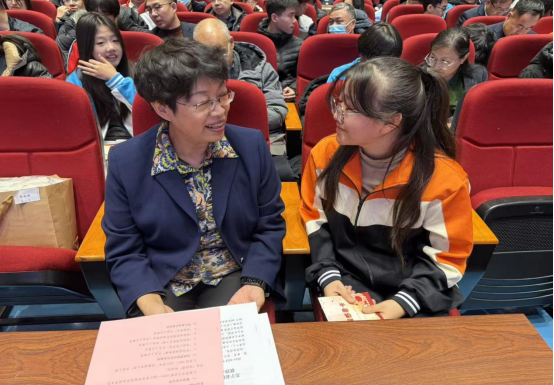 100名干部教师与100名受助学生现场结成帮扶对子,结对教师为学生送上越冬棉衣与爱心卡片,双方互留联系方式,倾心交流。