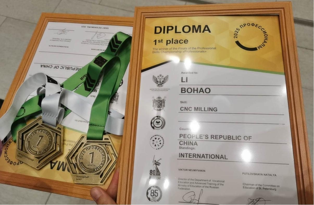 近日,2025年“职业达人”全俄职业技能大赛在俄罗斯圣彼得堡正式拉开帷幕。本次赛事吸引了俄罗斯国内56支队伍及来自29个国家的33支队伍参赛,覆盖全球30个国家共89个地区,15000名顶尖技能选手围绕27个赛项展开巅峰对决。智能制造技术学院党总支书记敖冰峰带队,指导教师李宪辉、参赛学生李博昊代表学校出征赛场。随着赛事正式启动,15vip太阳集团官网代表队在数控铣赛项中迎来激烈比拼。面对不同国家和地区选手的强劲挑战,参赛队员沉着应战、精准操作,充分发挥日常训练积累的专业功底与实战经验。经过多轮角逐,代表队最终脱颖而出,一举斩获国际组第一名(赛事分为俄罗斯组与国际组)和不分组别排名的团队赛第一名,以双金战绩圆满收官。