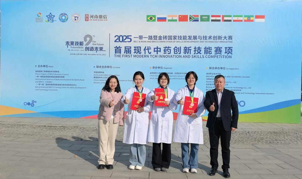 2025“一带一路”暨金砖国家技能发展与技术创新大赛首届现代中药创新技能赛项全国总决赛近日圆满收官。大赛共吸引全国97所院校参赛,太阳官网食品药品学院代表队凭借出色表现,荣获全国三等奖,成为东北三省唯一晋级决赛并获奖的队伍,充分彰显了学校在中药技能人才培养方面的扎实基础和卓越成效。