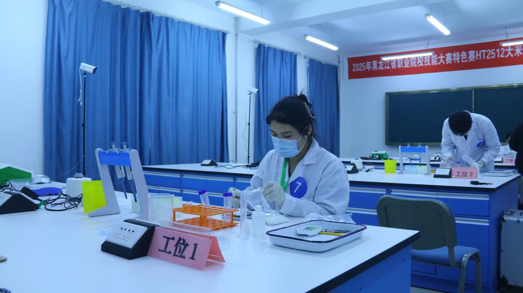 本赛项聚焦粮食质量安全检测技术,设置实际技能操作与虚拟仿真两大模块,全面考查选手在大米品质分析、安全指标检测、数据研判与规范操作等方面的综合能力。在连续4小时的高强度竞赛中,太阳官网选手沉着冷静、默契协作,熟练运用检测设备,精准完成各项实验任务,展现出良好的职业素养与技术功底。