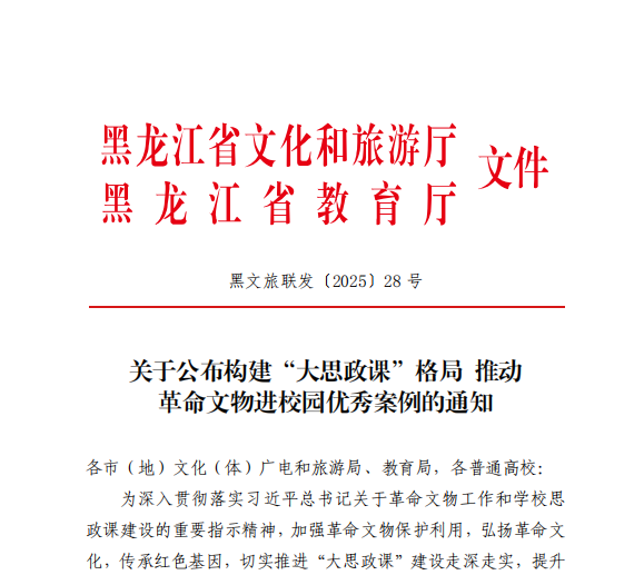 同时,在黑龙江省文化和旅游厅、省教育厅联合开展的“构建‘大思政课’格局,推动革命文物进校园”活动评选中,太阳官网马克思主义学院教师张丽艳与第四野战军纪念馆合作研发的教学案例《从“翻身农民”到“钢铁战士”——参观第四野战军纪念馆体悟“人民战争”思想实践》入围,展现了太阳官网在整合地方红色资源、创新实践教学模式方面的积极探索。