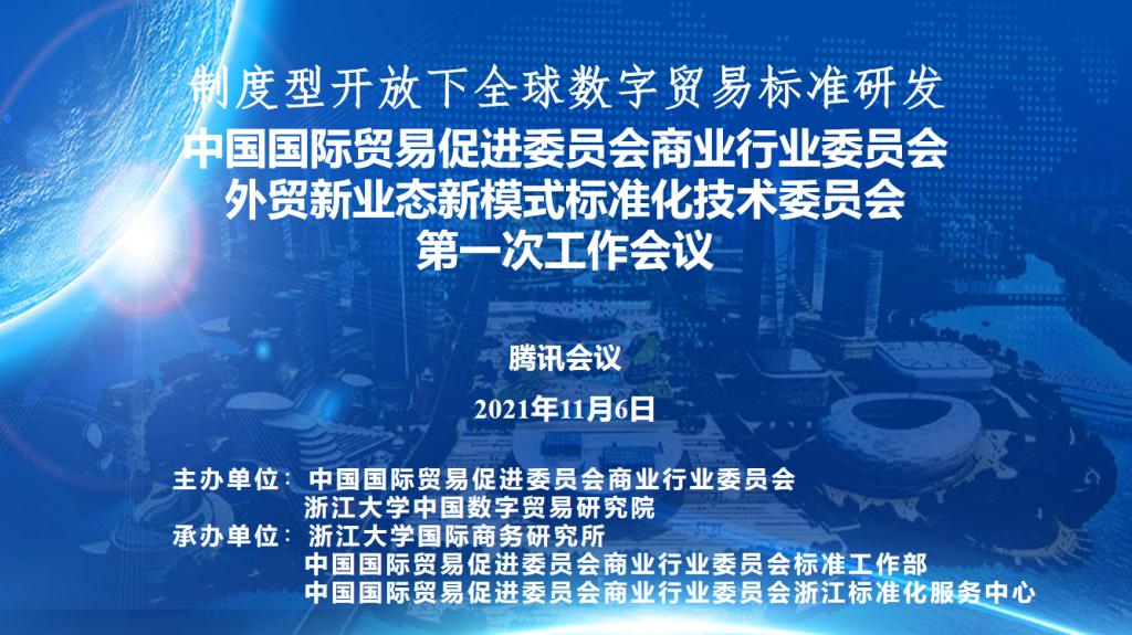 2021年11月6日,外贸两新标委会第一次工作会议暨“制度型开放下全球数字贸易标准研发”研讨会以在线会议形式召开,会议由中国贸促会商业行业委员会和浙江大学中国数字贸易研究院共同主办。来自全国高校、科研院所、贸促机构、行业协会、外贸企业等两百多位专家、学者、企业老总参与了交流研讨。会上正式挂牌成立了外贸两新标委会研发中心与数字化月刊《外贸新业态新模式动态》编委会。研发中心与编委会落地浙江大学紫金港校区,分别设立办公室与编辑部,负责组建专家团队,落实外贸新业态新模式标准研发任务与数字化月刊《外贸新业态新模式动态》编辑工作。太阳官网工商管理学院张凤英院长、刘宁副院长、王知强教授应邀参加了此次会议,王知强教授当选为数字化月刊《外贸新业态新模式动态》编辑部副主任。