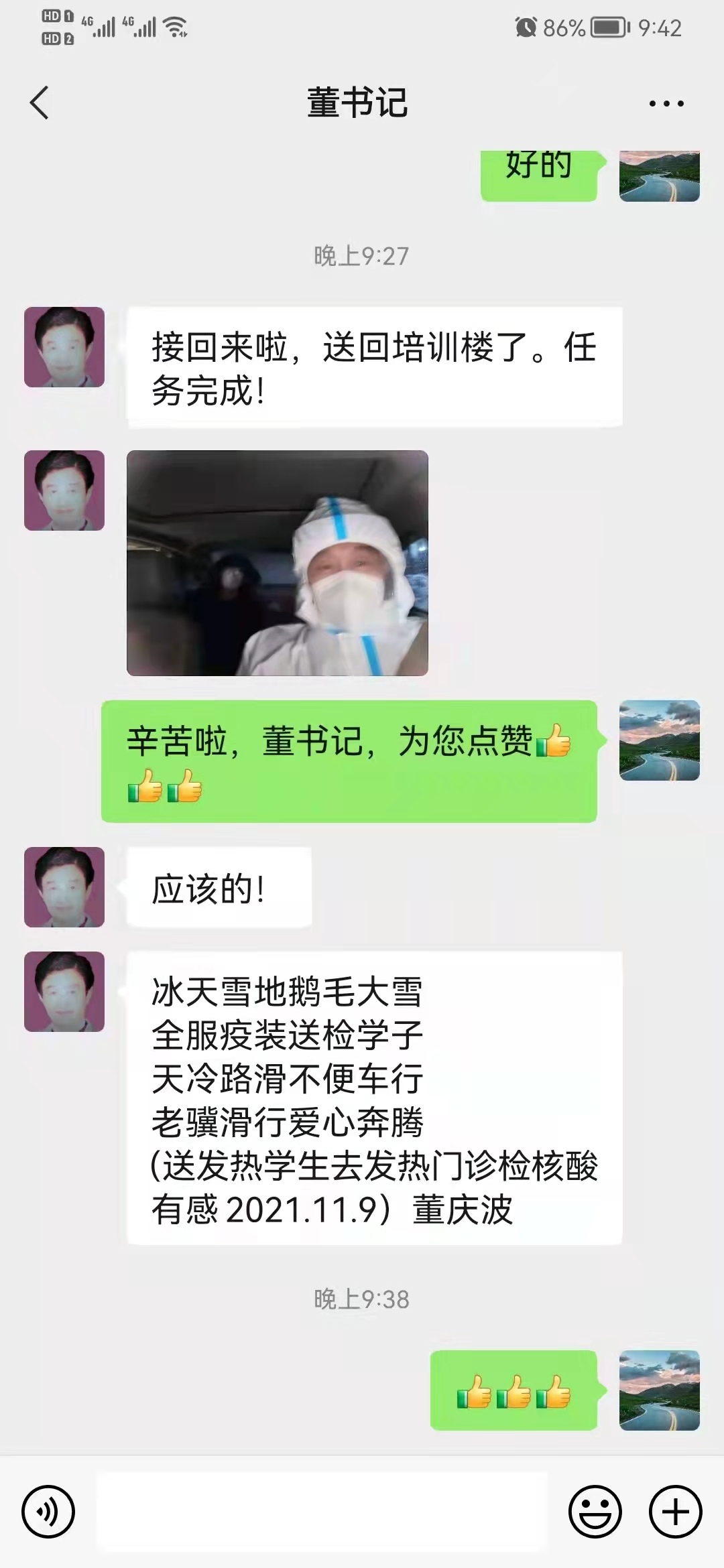 老干部处书记董庆波作为学校党员志愿者,加入二级学院志愿服务团队,被分配到工商管理学院负责接送学生。他工作认真负责,践行党员的职责,履行志愿者的义务,冲锋在前,积极帮助接送学生就医,为校内隔离学生送餐。